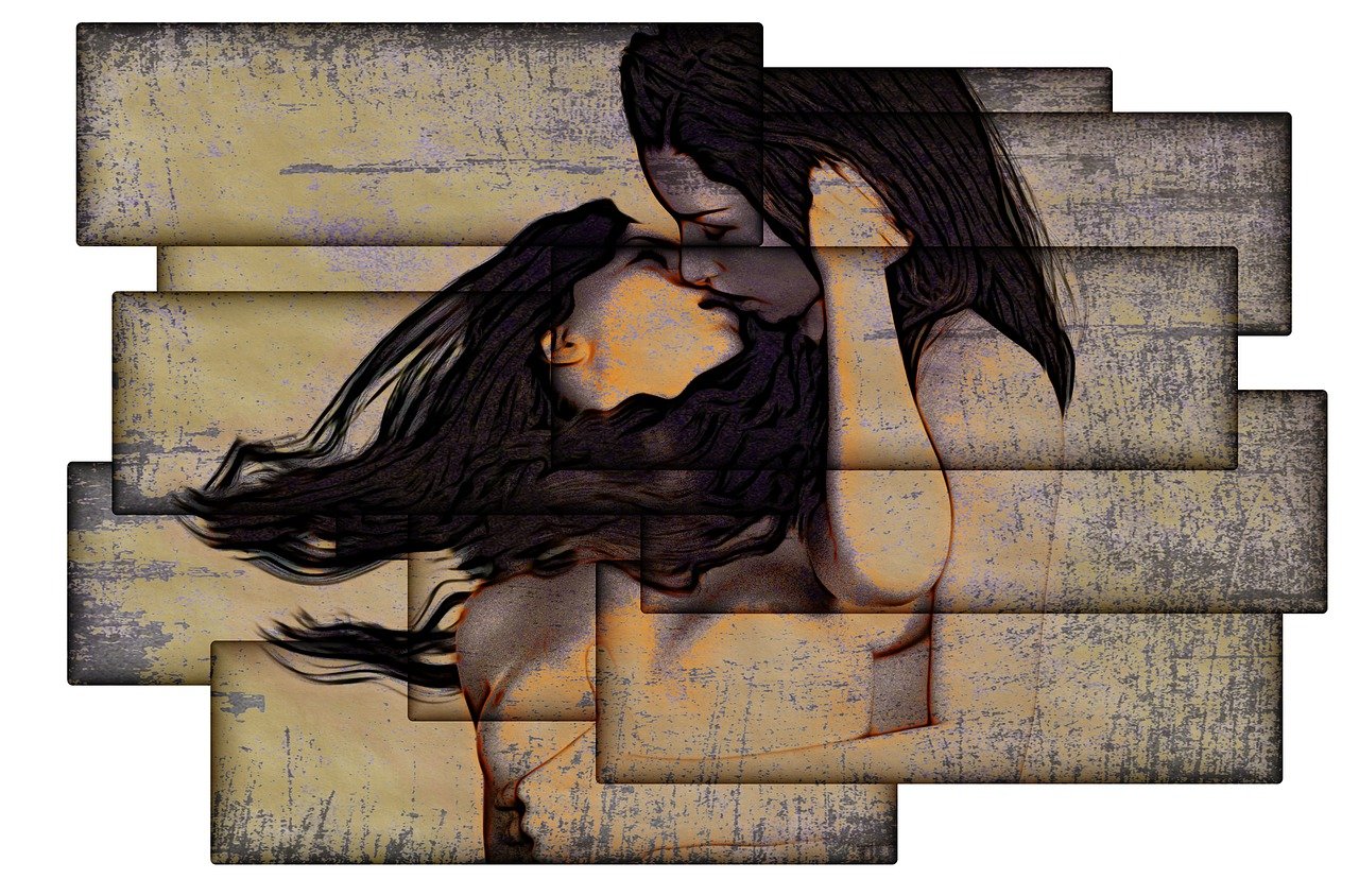 Just like a rogue Mills and Boon romance that had gone seriously off-piste, the kiss I experienced with the male half of this couple started with us watching a flogging show in a sex club. Across the room, I watched my husband kissing his wife in a dark corner, to the sounds of soft whipping and distant music. I’d been wanting to kiss this man for months, as we had been getting to know them from a distance in the lead up to a lifestyle event. He was intelligent, empathetic, quick-witted and incredibly attractive. However, I soon came to realise that it might be up to me to make the first move, because I could tell he was nervous. For those minutes leading up to making the decision to ask him for that kiss, I could hear my heartbeat whooshing in my ears and I was scared! Scared he’d say no, worried I’d misread signals, and fearful of rejection, even though rationally I knew it wouldn’t be like that. I could feel the opportunity slipping away and; almost detached from my body, I turned to him, put my hands underneath his shirt to hold his back, and heard myself asking if he’d kiss me. But when our lips met, I rushed back into myself again and honestly, it was 0-60 mph in one second flat… ongoing proof that this man (along with my husband) proves over and over again that I can feel 100% gay sometimes… but I’m simultaneously 100% straight. I dream of that tongue, and he knows it.